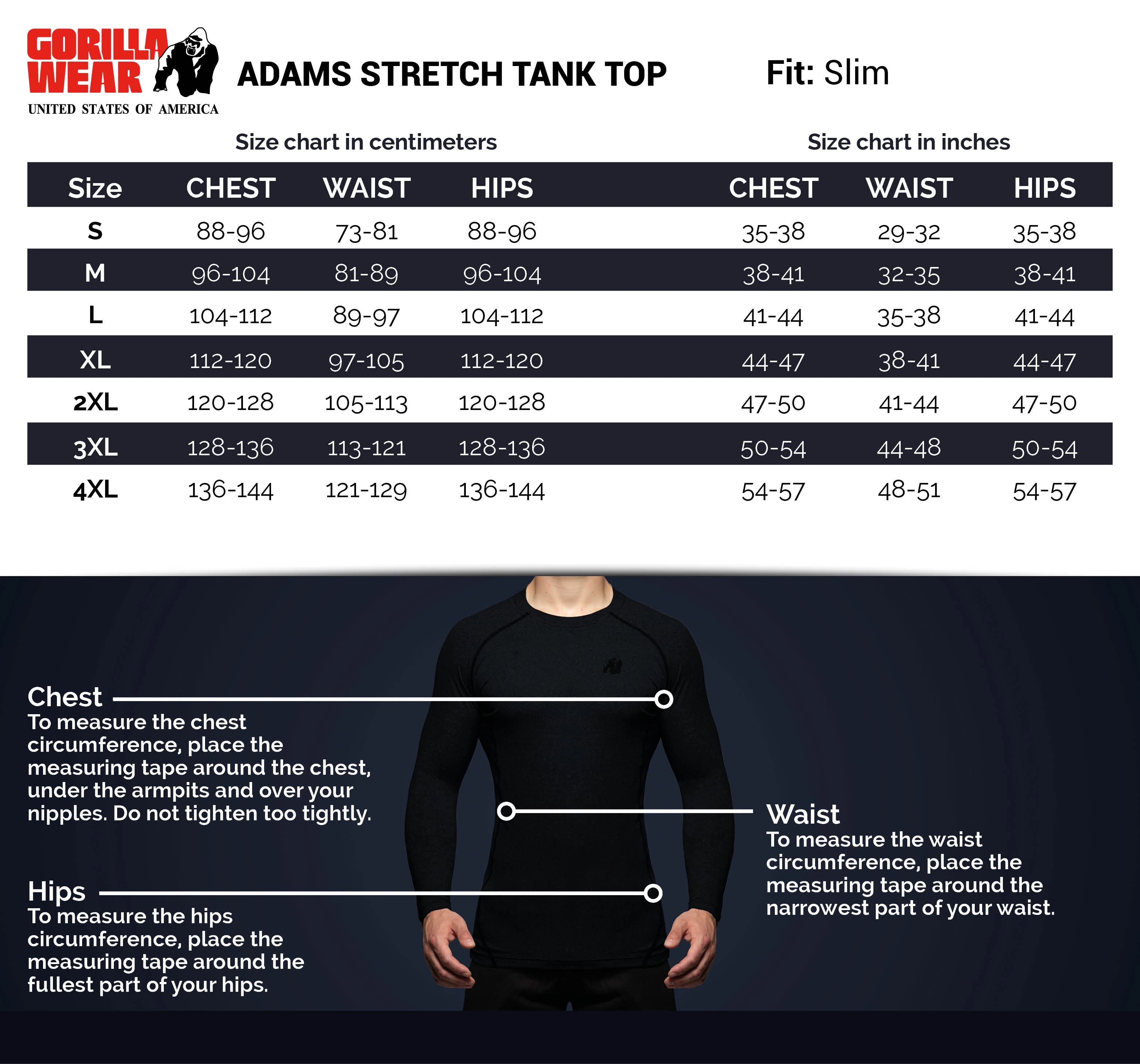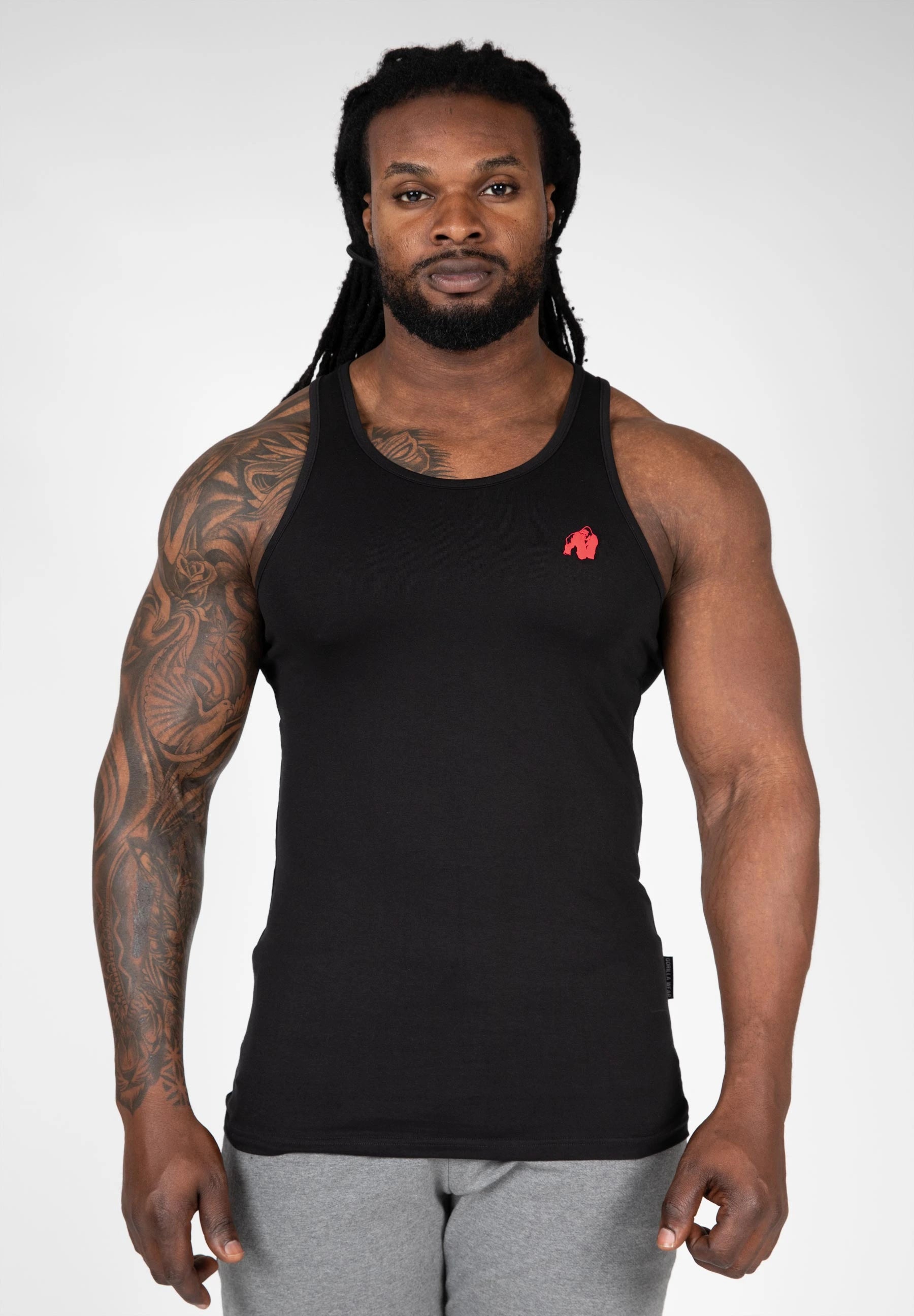 The Adams Stretch Tank Top can be worn both as a base layer and as a top. The figure-hugging tank top is made from a mixture of high-quality cotton and elastane. This mix of fabrics ensures that the tank top is stretchy, feels light, and is great to wear. This doesn’t limit you in any way during training and also makes it perfect to wear as a base layer. The tank top has the recognizable Gorilla Wear logo on the chest. This really shouldn’t be missing in your wardrobe.