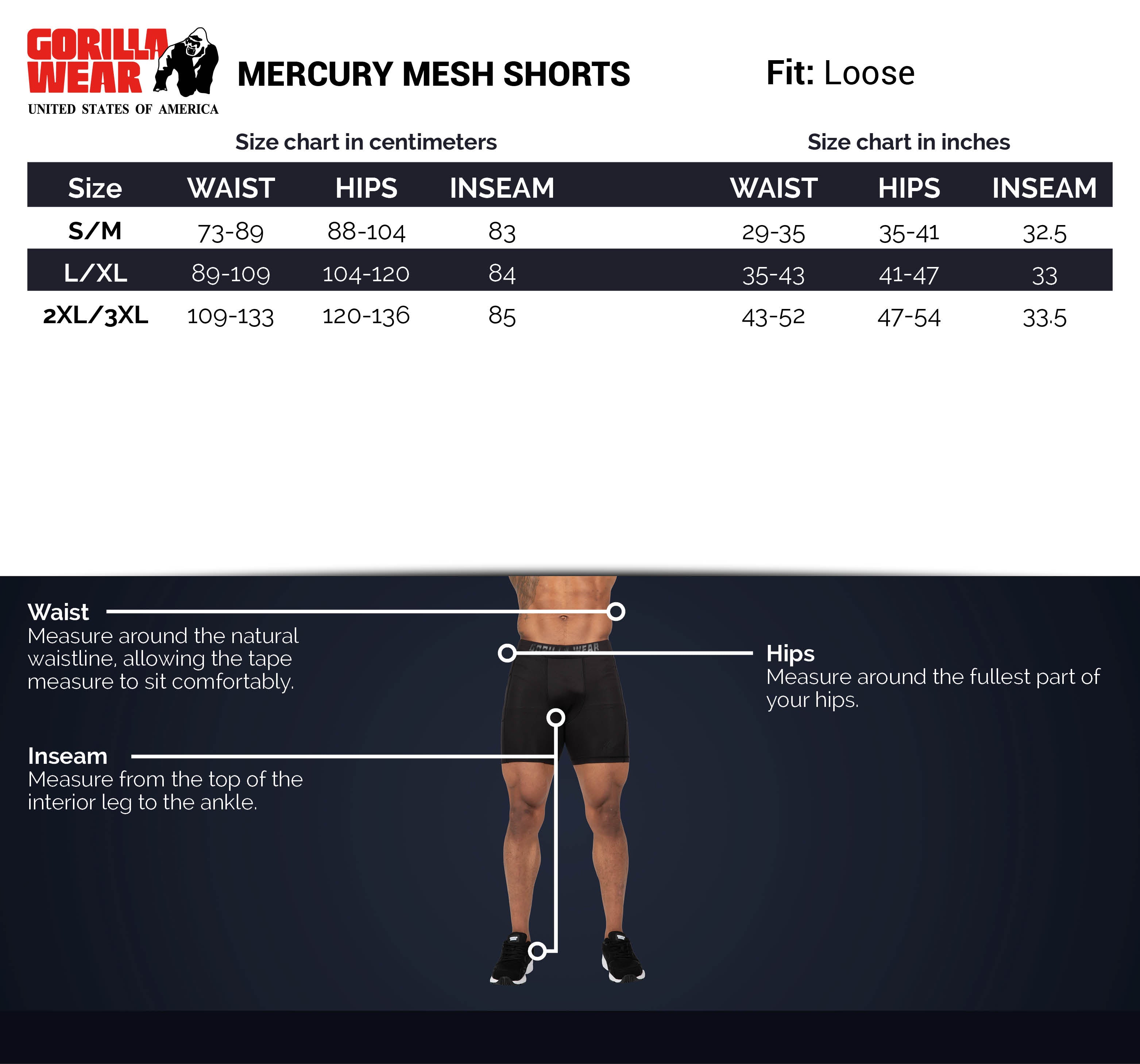 The Mercury Mesh Shorts is one of Gorilla Wear’s classics. These oversized shorts are perfect for workouts due to lightweight and breathable mesh fabric. Mercury Mesh Shorts features a unique elastic waistband and convenient zipper closure front pockets. The shorts are equipped with big Gorilla Wear logos both on the waistband and front leg to show everyone you’re part of #TeamGorillaWear. Prefer pants over shorts? Both are available in our webshop.