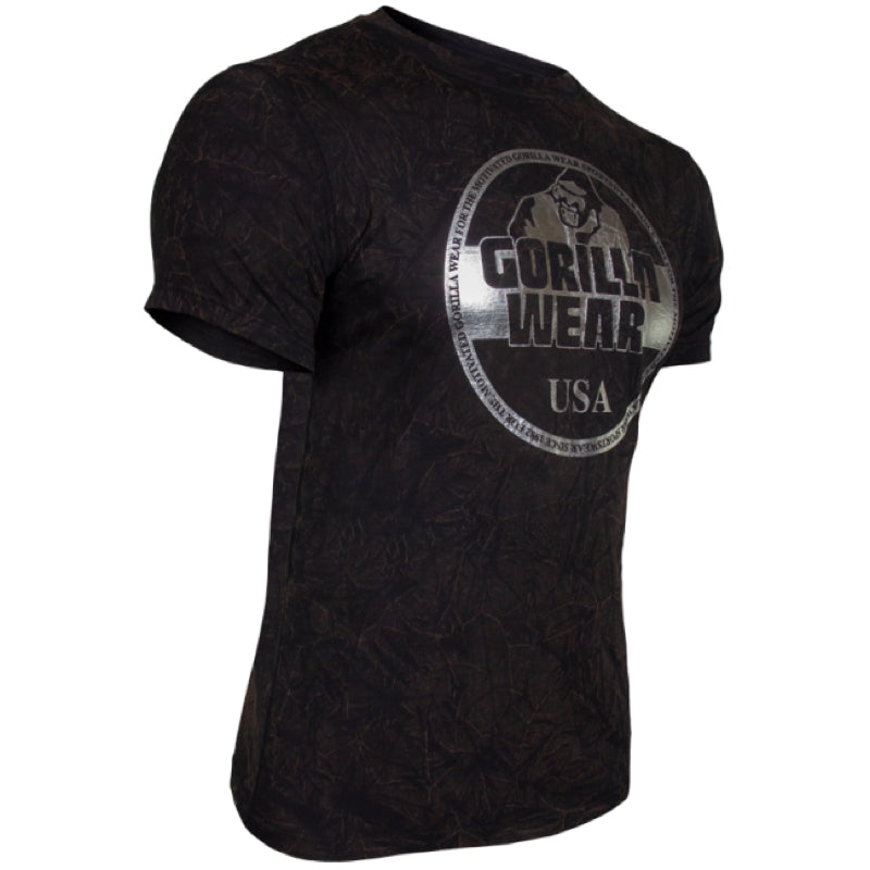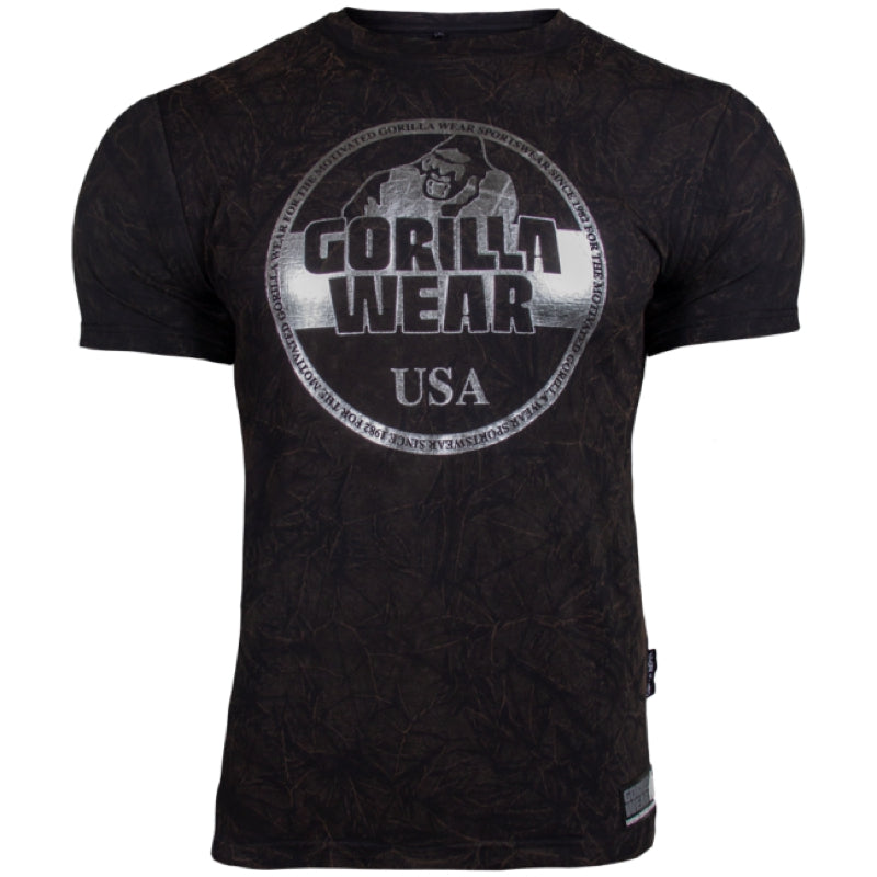 This comfort regular fit washed colored t-shirt has an eye-catching design and color. The main emphasis of this t-shirt is the unique silver flashy Gorilla Wear USA logo on the front of the Rocklin T-shirt. The fabric used for this t-shirt is top notch and hand selected to ensure the user of both high quality, mobility, and comfort. Available in more colors. It’s time to show the people that you are a member of the GORILLA WEAR Family where you can choose between the colors Black, Royal Blue and Gray.