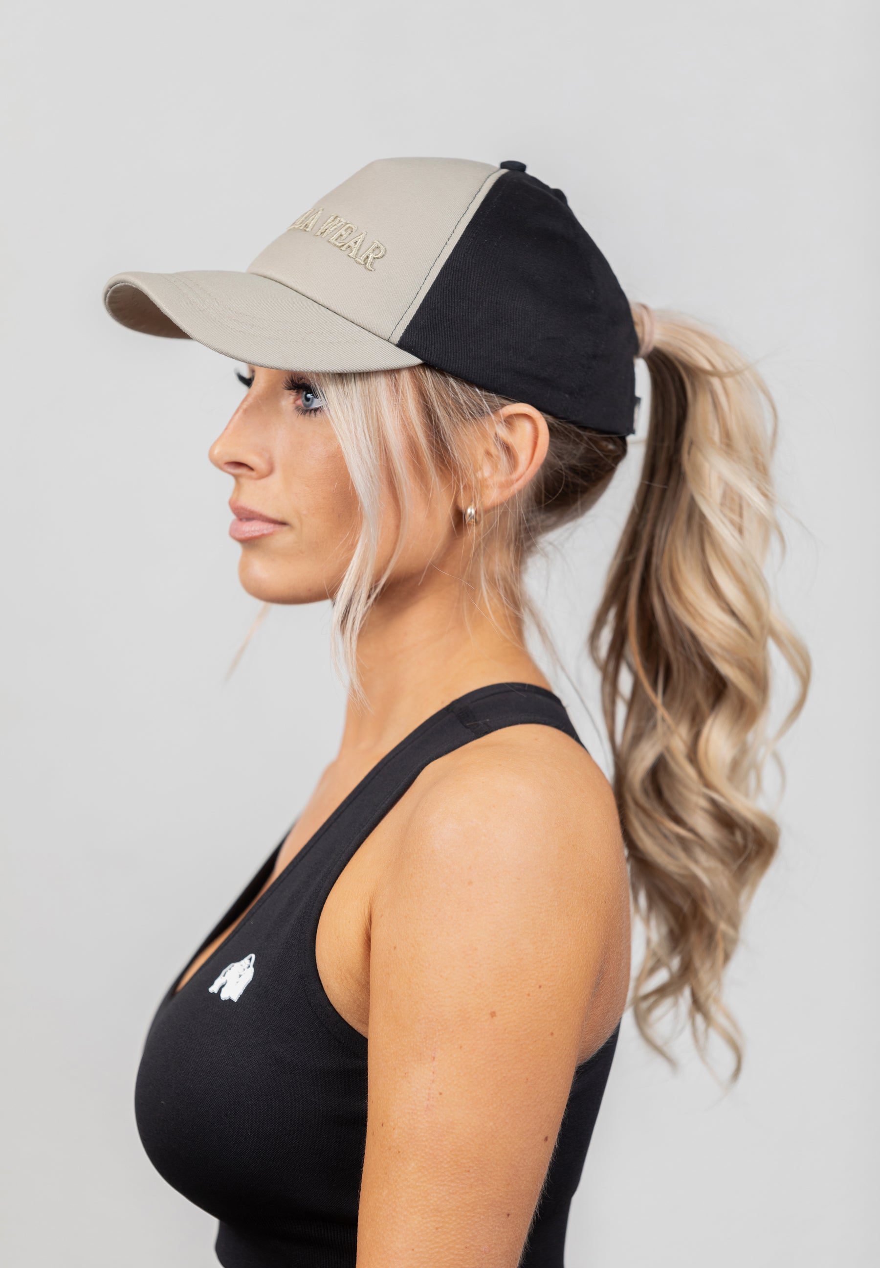 Sharon Ponytail Cap – Beige/Black