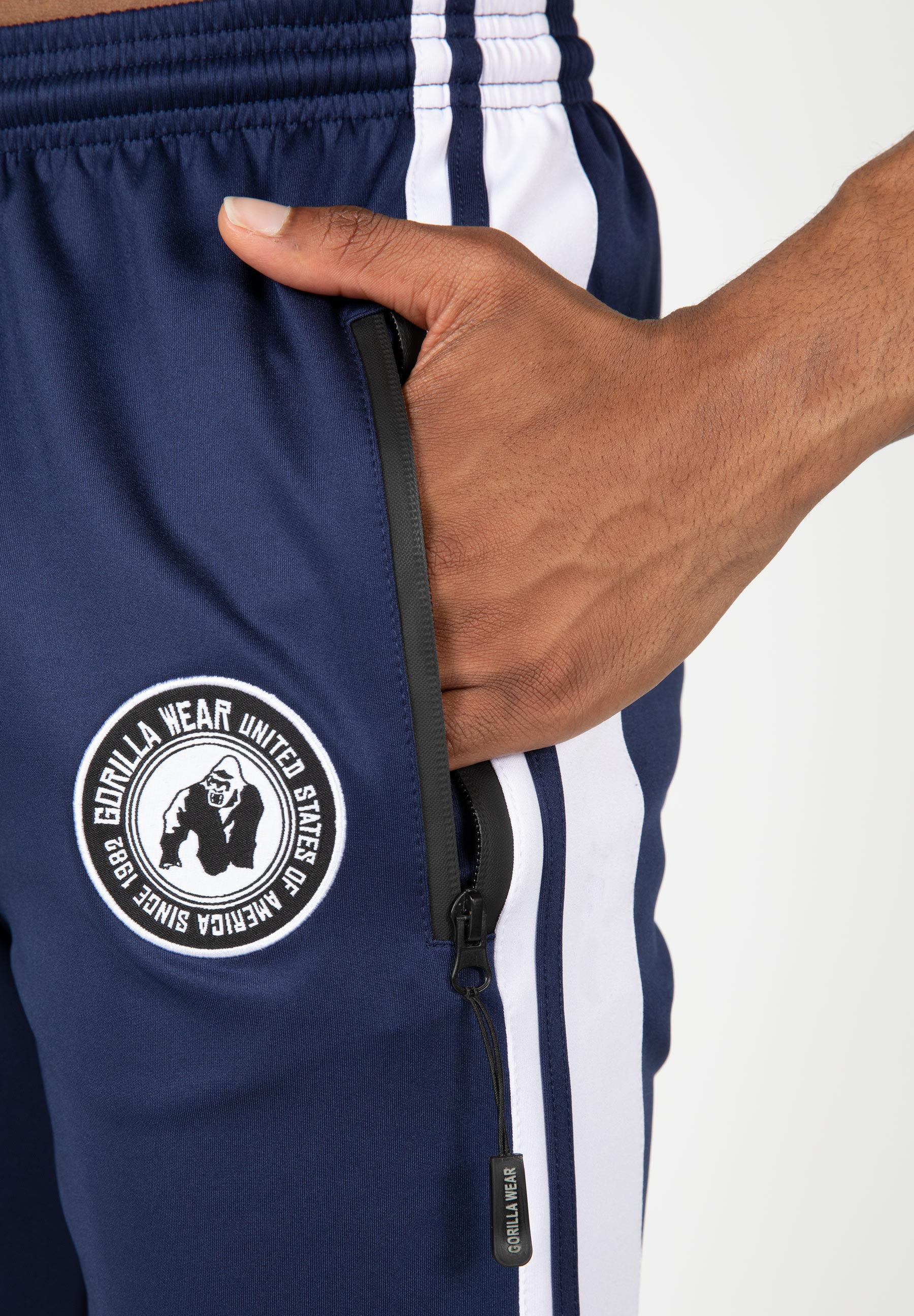 With the Stratford Track Pants, all eyes will be on you. These pants are perfect to wear during workouts, thanks to the stretchy fabrics that provide freedom of movement; These pants are suitable to wear outside the gym since they look cool and feel great. It has a slim fit and is made of a blend of polyester and spandex. Thanks to the zippers at the ankles, the pants can be easily put on and taken off. They have two zipped front pockets and are finished with an embroidered emblem and screen-printed lettering. And what’s even better is that these track pants are available in two different colors and are part of the Stratford set. This set includes matching T-shirts and shorts. Complete the entire collection and steal the show!