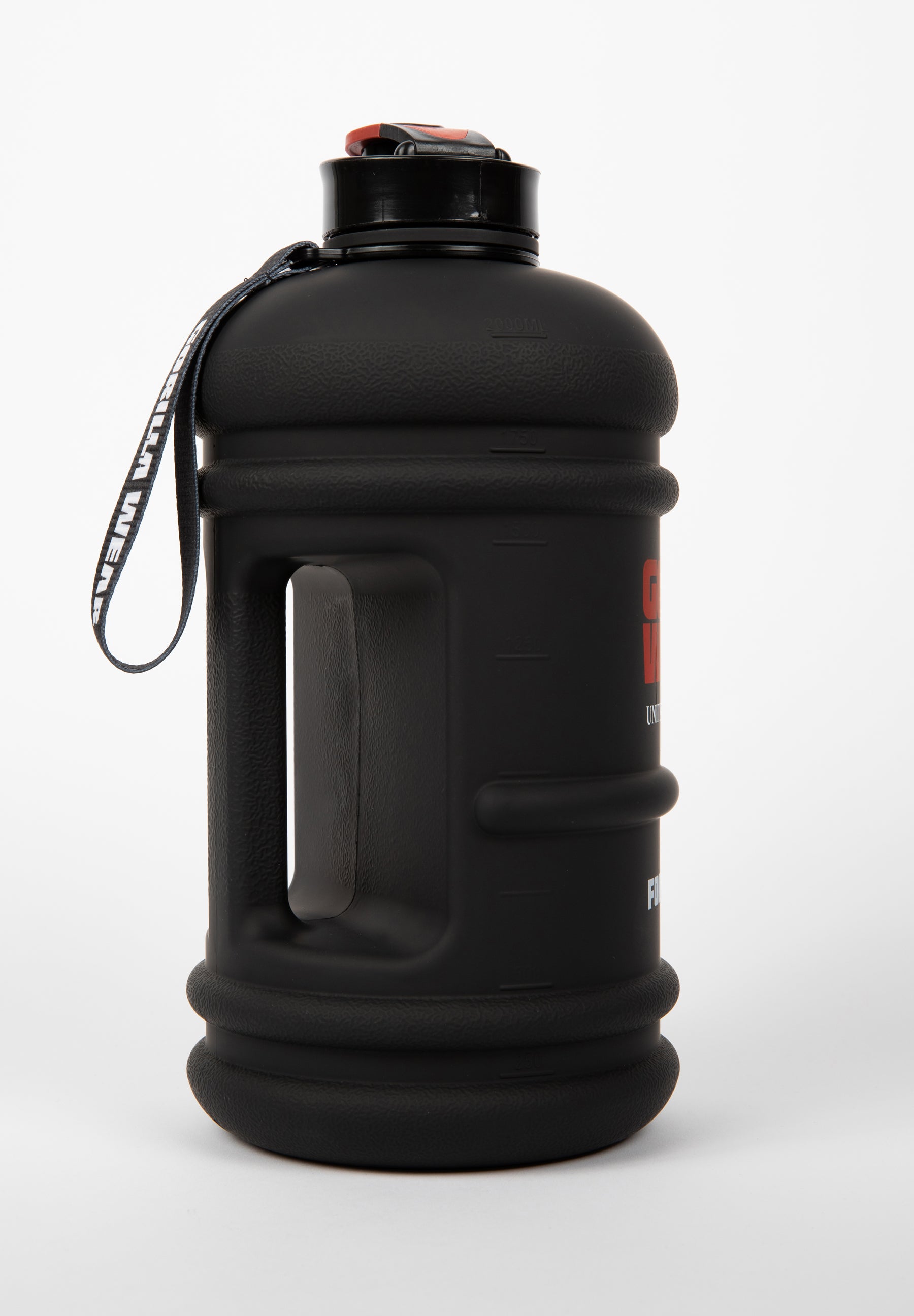 We all know it is important to stay hydrated during your workouts. Our Water Jug holds a whopping 0.5 gal. To help you with that! You can easily carry it with you thanks to the handle or the cord at the neck. The water jug is equipped with a screw top and flip-top. This means you don’t have to unscrew the entire cap every time you want to drink, but it remains easy to fill it. It flaunts a big classic Gorilla Wear logo. The Water Jug 0.5 gal. is break-proof, leak-proof, dishwasher-safe, and non-toxic (BPA-free & DEHP-free). Note that it is not suitable for hot liquids.