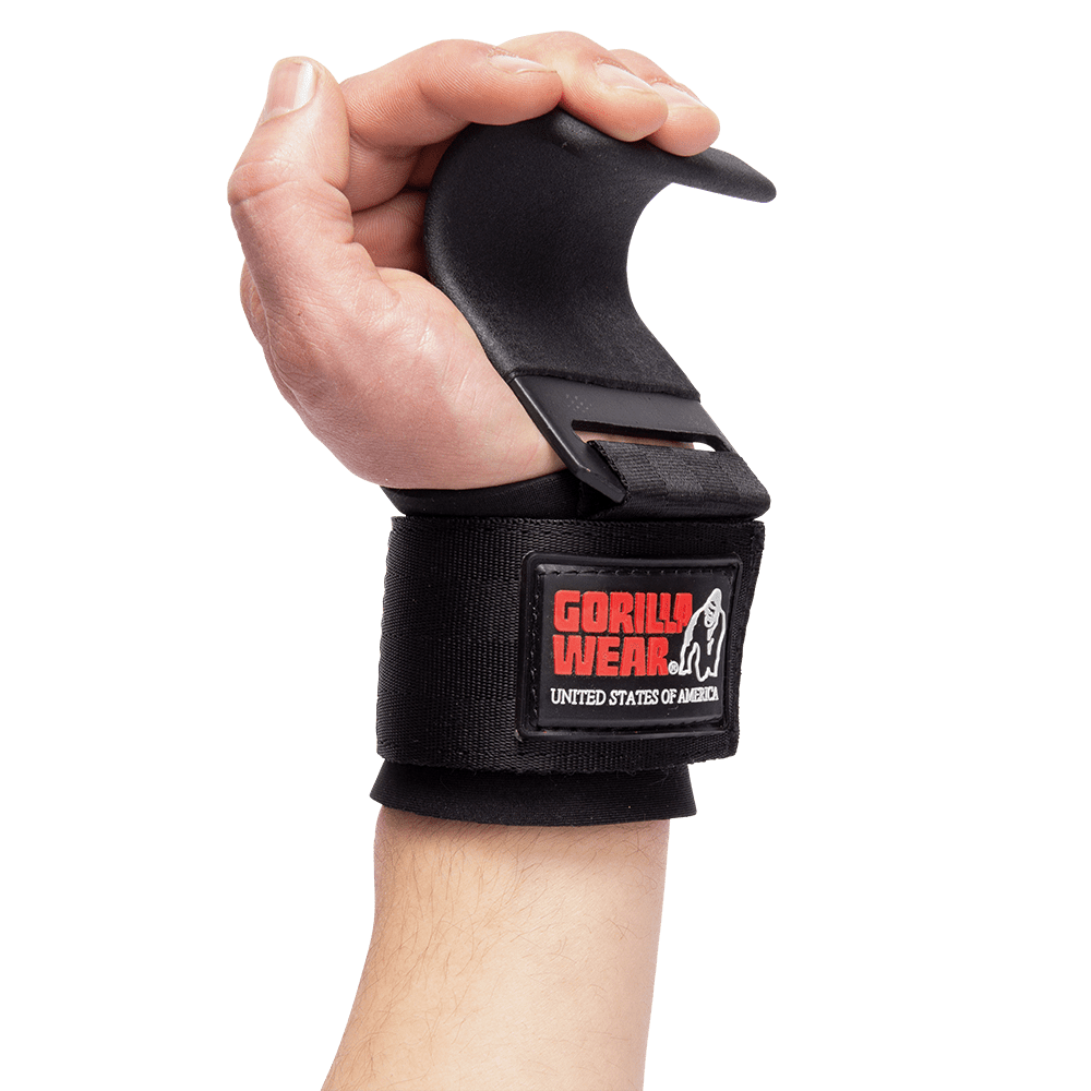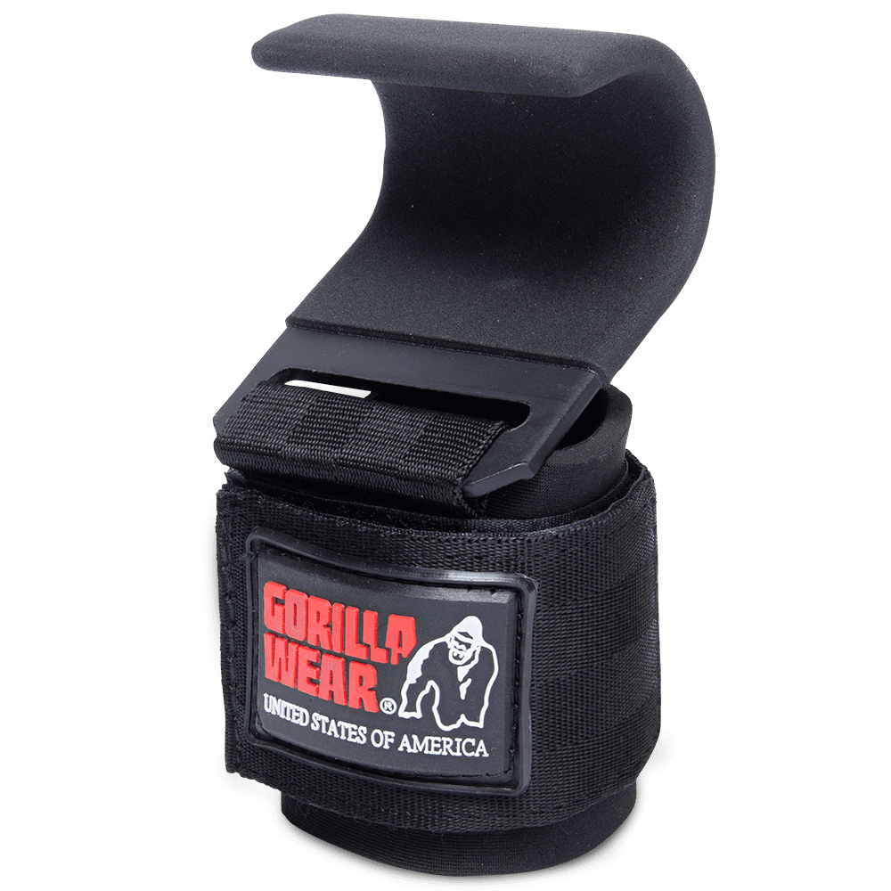 Weight Lifting Hooks can help: we’ve all been there – when we’re ready to push and hit our next level but are fearful that our grip might slip on our bars. It can end up being an unpleasant situation. And while there are many options to help improve your grip strength, these hooks provide a unique alternative to holding your weights instead of trying to just add more grip. The Gorilla Wear Weight Lifting Hooks each have a large Velcro strap over the fabric wrist wrap to secure the hook to your arm. Adjust this for tightness and comfort, but ultimately, you will want it attached tight to your arm as it is what is going to be taking most of the direct contact with your weight bar.